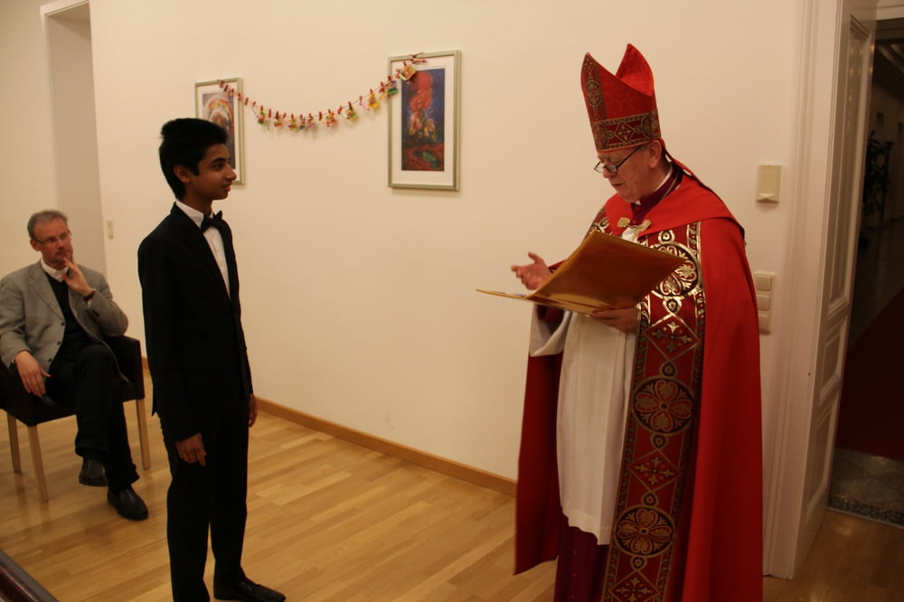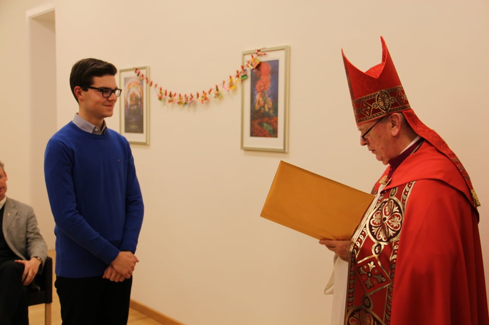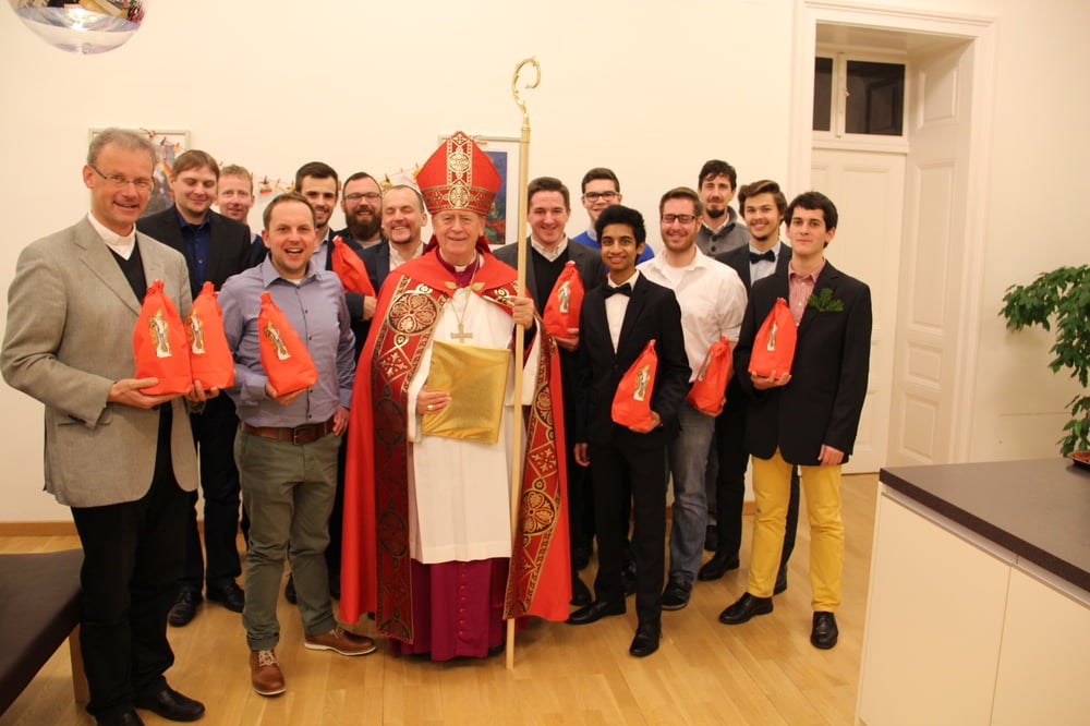 Bischof Ludwig Schwarz erklärte sich bereit, sich für uns als Nikolaus zu verkleiden. Obwohl er ein vielbeschäftigter Bischof ist, nahm er sich doch die Zeit, ließ sich verkleiden und kam zu uns. Eigentlich wollte er nur eine Stunde bleiben, aber da es ihm so sehr gefiel, blieb er 2 ½ Stunden lang bei uns. Wir verbrachten einen sehr schönen und lustigen Abend miteinander. Es wurden Lieder gesungen, Gedichte aufgesagt gegessen und getrunken. Bischof Ludwig genoss sichtlich die Gemeinschaft mit den Propädeutikern und wir seine väterliche Art! Alles in allem ein sehr gelungener Abend.