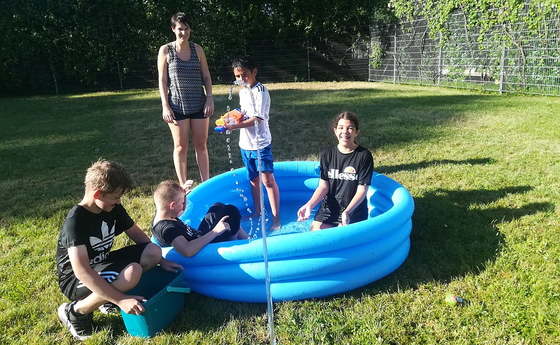 Am 25.06. konnten wir endlich bei perfekten Sonnenschein unsere Wasserschlacht nachholen. Es war ein riesen Spaß, einander gegenseitig abzuspritzen und zum Schluss wurde noch im "Pool" geplantscht.