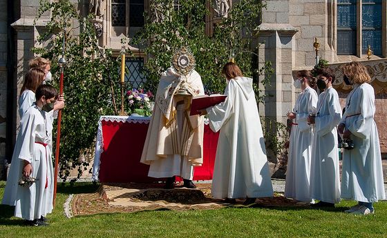 Die Monstranz mit der Hostie - getragen vor die Tore der Stadtpfarrkirche