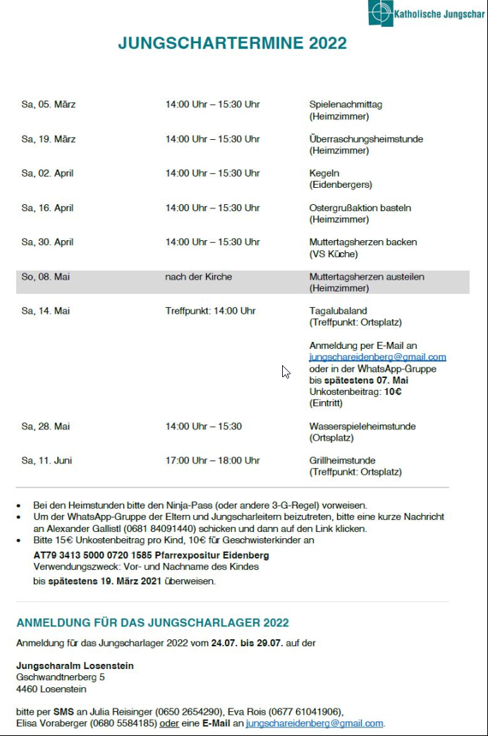 (ev. Abweichungen werden am Verkündzettel bekannt gegeben)