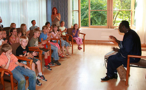 Patrick Addai liest und singt 2008 Buchautor Patrick Addai aus Ghana besuchte uns, im Rahmen der Ferienaktion der Pfarre, am 2.9.08 nachmittags im Gemeindesaal. zu den Bildern: Patrick Addai liest und singt 2008