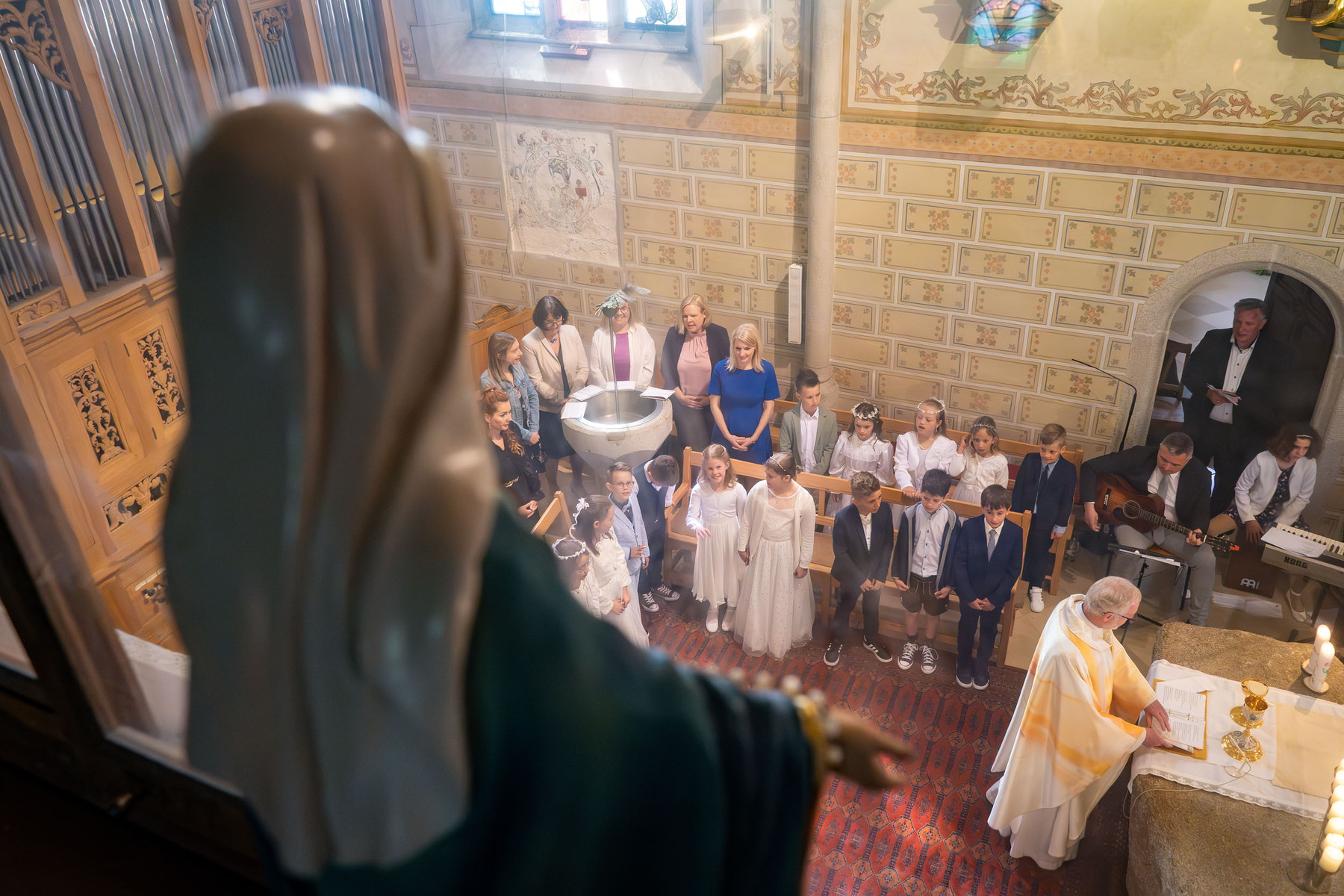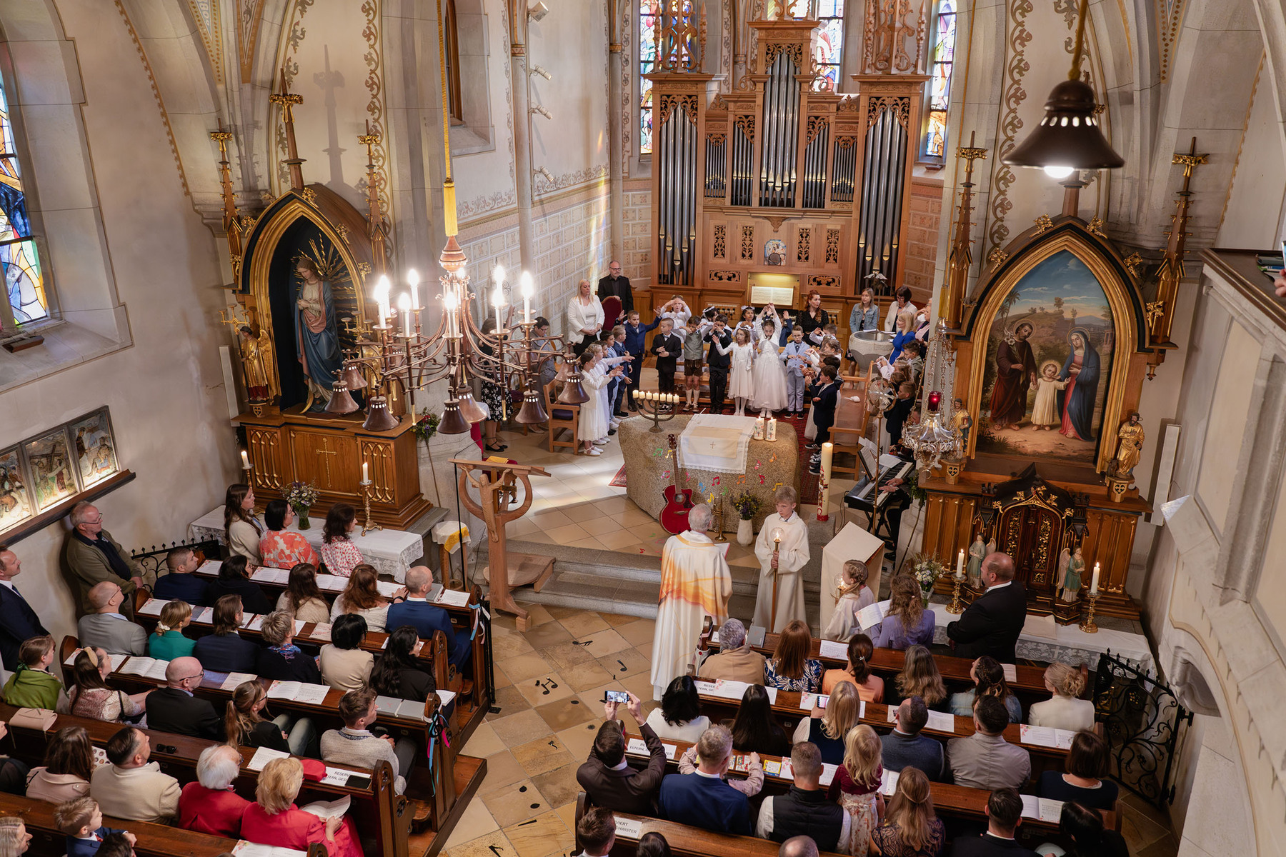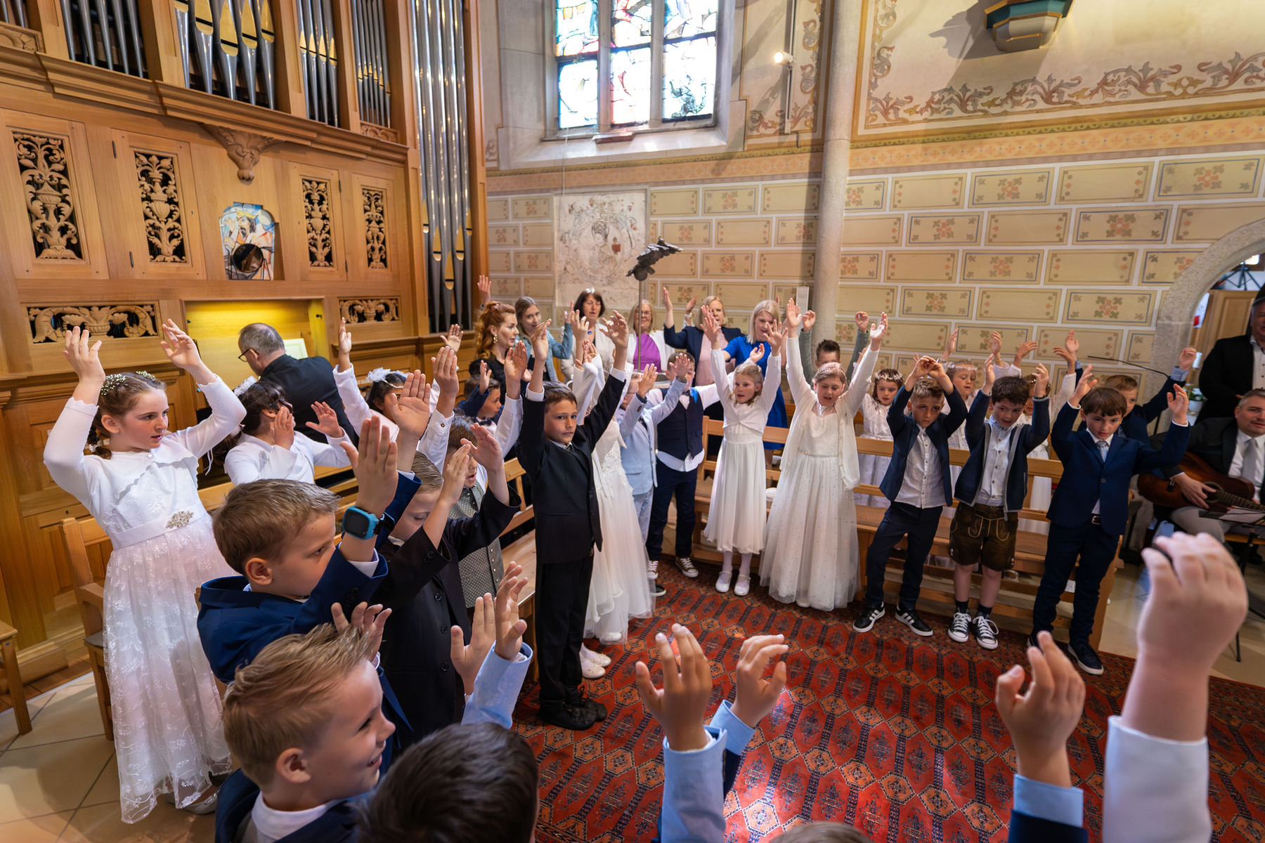 Der Empfang der heiligen Kommunion wurde wunderbar umrahmt von zwei Papas: Christoph Leitner (Gitarre und Gesang) und Reinhard Kronsteiner (Gesang)