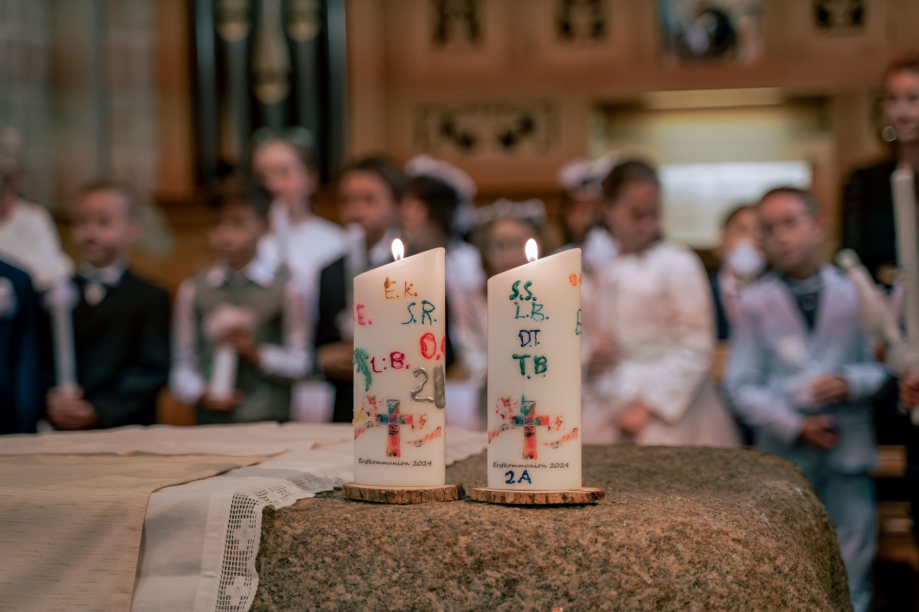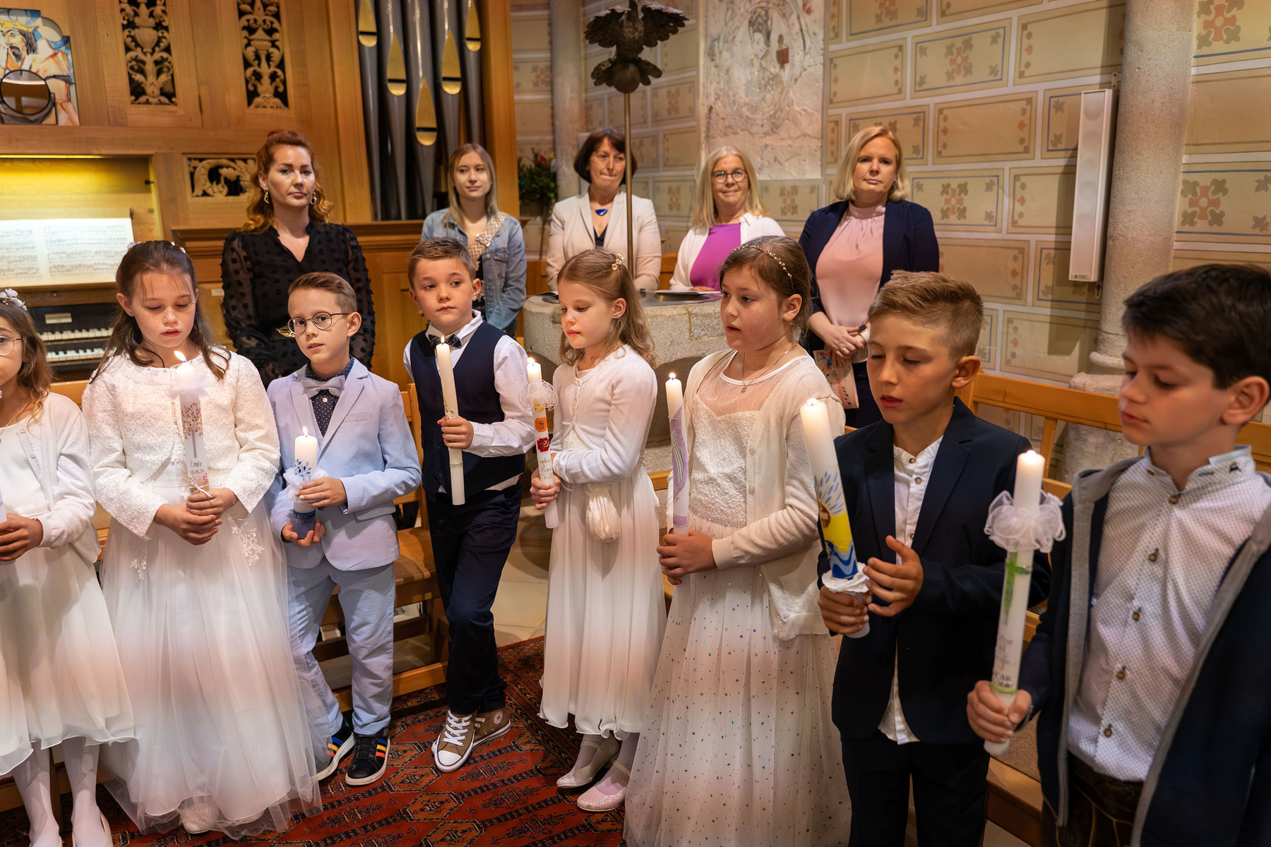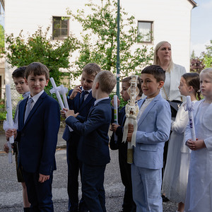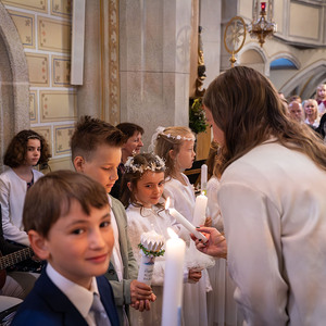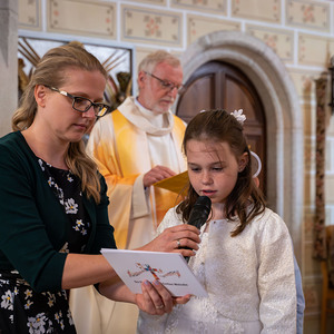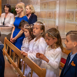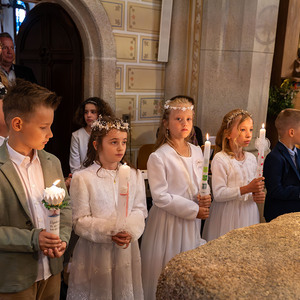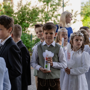 Die Vorbereitung zur Erstkommunion fand heuer bereits zum zweiten Mal im Pfarrheim und in der Pfarrkirche statt – mit allen Kindern gemeinsam. Bei den Treffen wurde mit Unterstützung einiger Eltern gemeinsam gespielt, gesungen, gebastelt, gebacken und gelacht. In einem Ritual mit einer Feuerschale wurde – leider bei stürmischem Aprilwetter – über das Sakrament der Buße gesprochen, und wir lernten einige wichtige Personen und Gebäude unserer Kirche näher kennen.