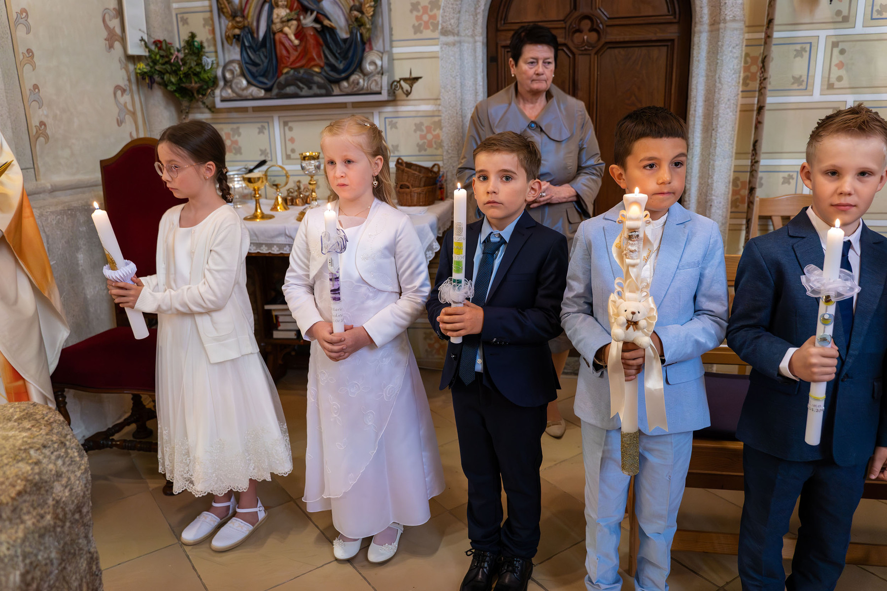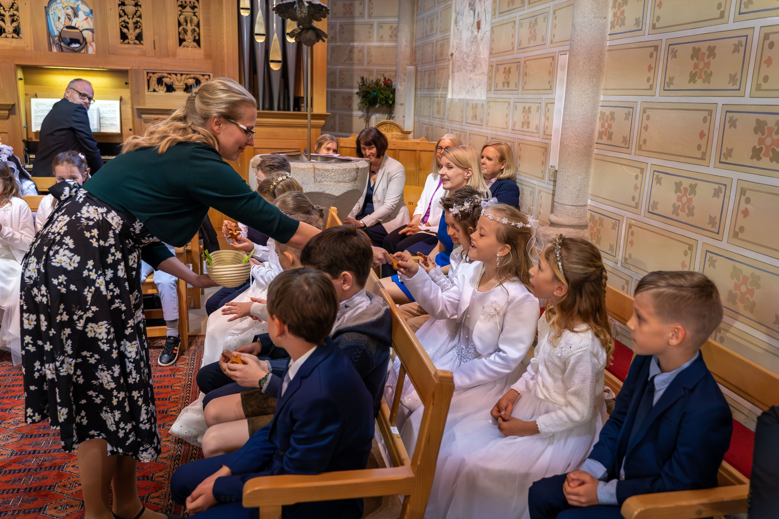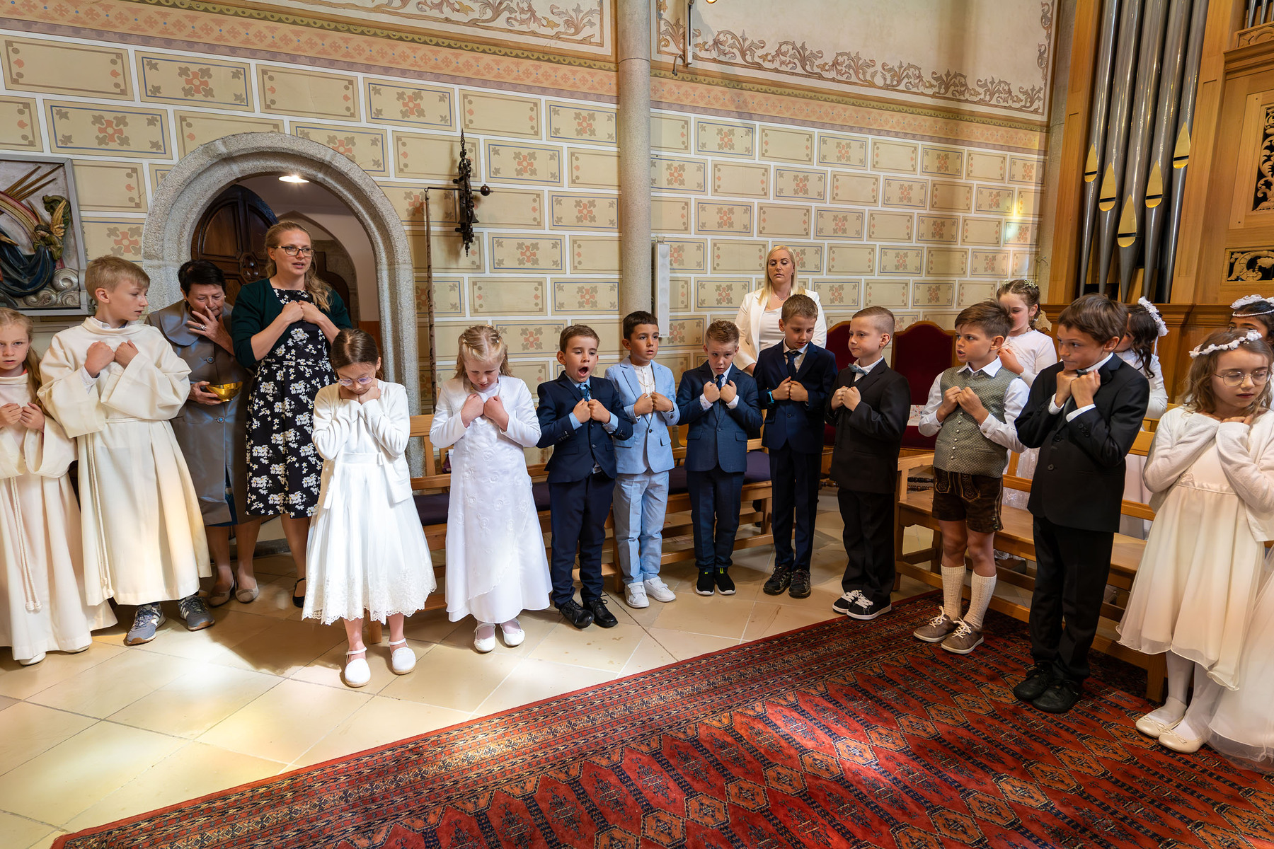 Die Vorbereitung zur Erstkommunion fand heuer bereits zum zweiten Mal im Pfarrheim und in der Pfarrkirche statt – mit allen Kindern gemeinsam. Bei den Treffen wurde mit Unterstützung einiger Eltern gemeinsam gespielt, gesungen, gebastelt, gebacken und gelacht. In einem Ritual mit einer Feuerschale wurde – leider bei stürmischem Aprilwetter – über das Sakrament der Buße gesprochen, und wir lernten einige wichtige Personen und Gebäude unserer Kirche näher kennen.