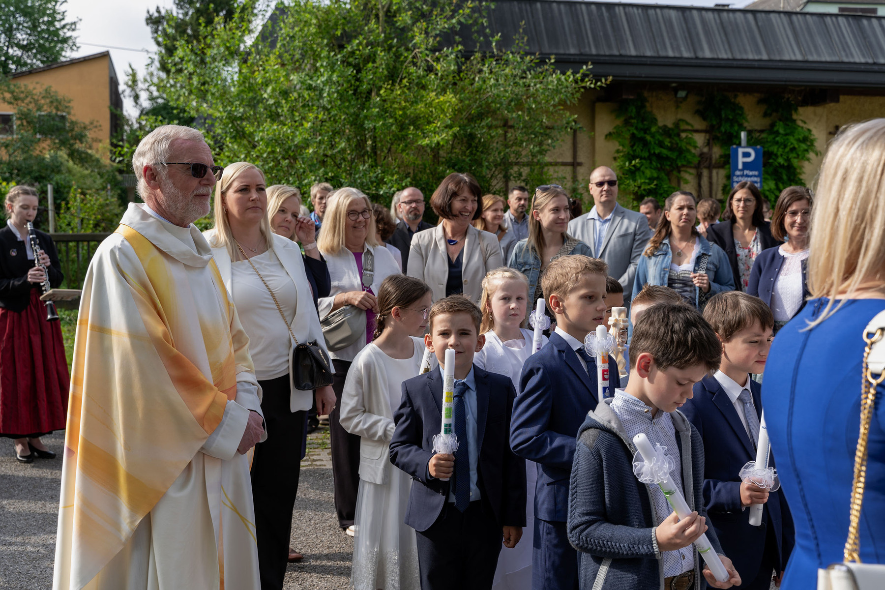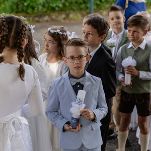 Der Musikverein Schönering sorgte bereits in der Früh beim Zug zur Kirche für die perfekte festliche Stimmung, und im Anschluss an die Messe wurden die Kinder ebenfalls mit einigen Märschen toll in Empfang genommen.