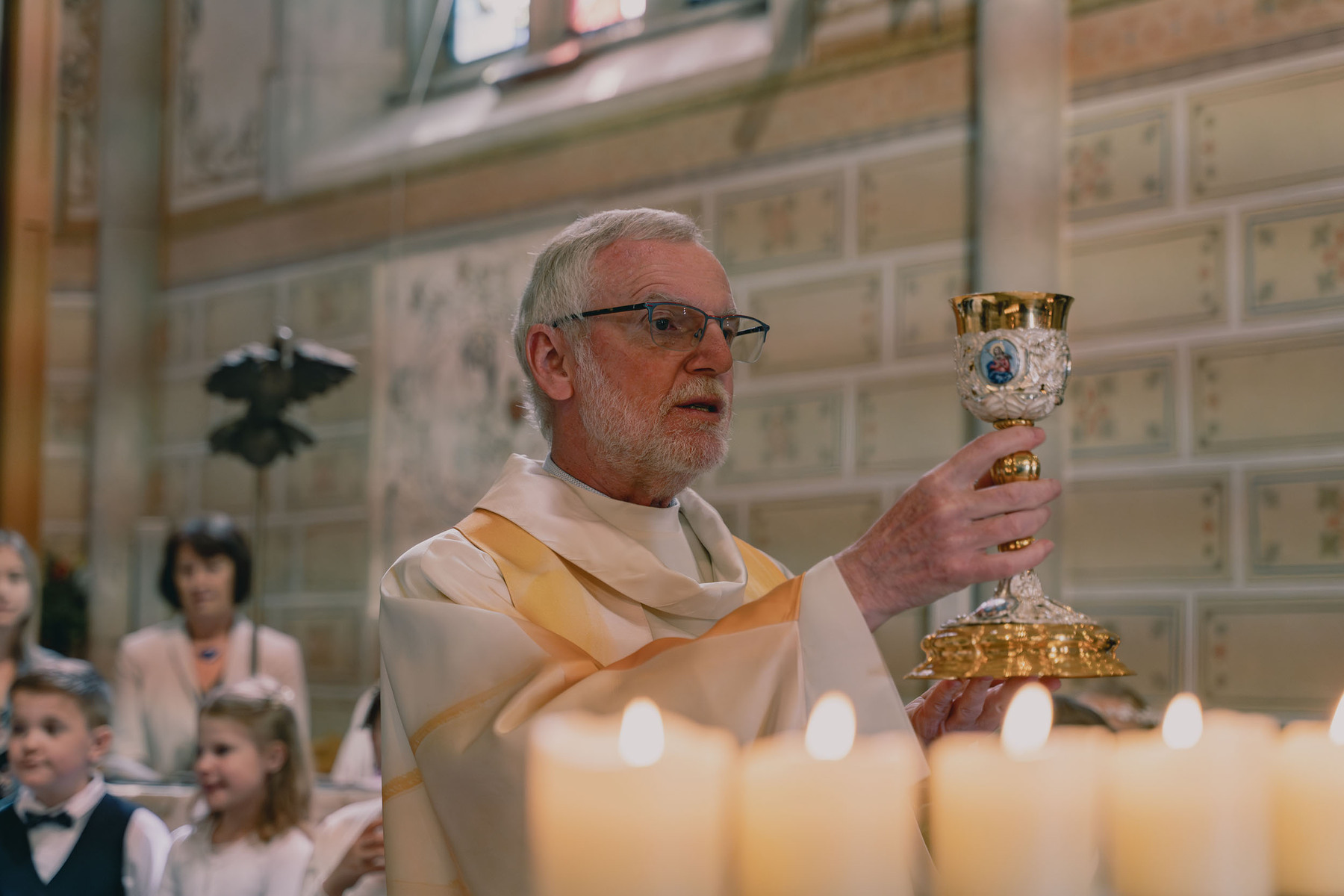 Bei der Tauferneuerung entzündeten die Taufpat:innen die Taufkerzen ihrer Patenkinder – als Zeichen ihrer Verbundenheit und Wegbegleitung auf dem Lebensweg der Kinder.