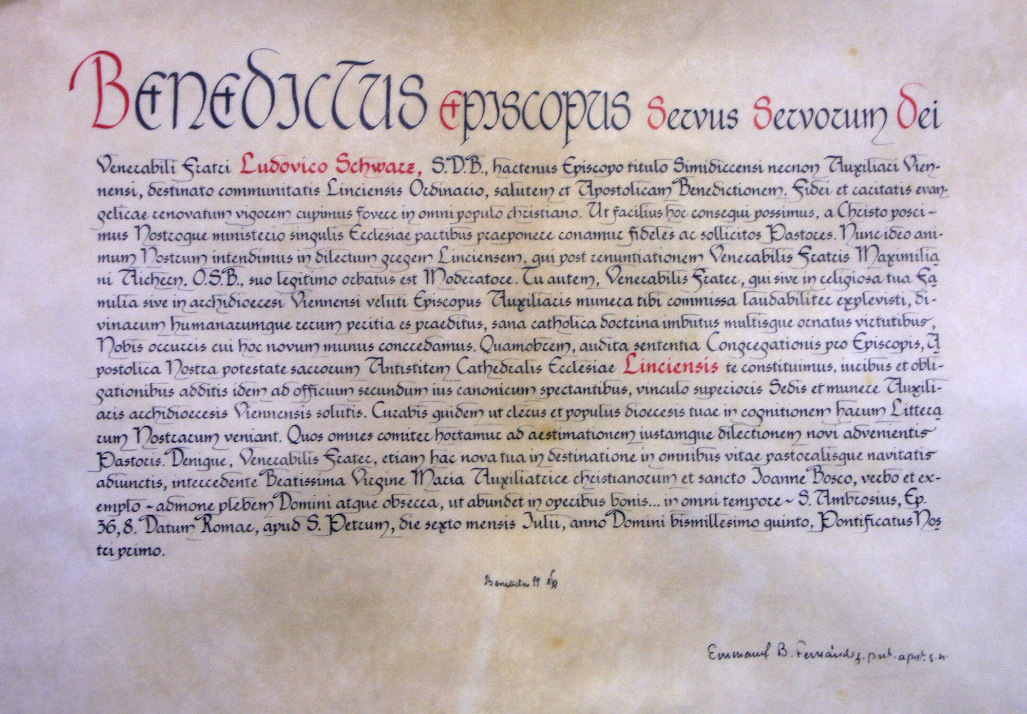 Foto Amtsübernahme 18.9.2005: Päpstliches Ernennungsdekret